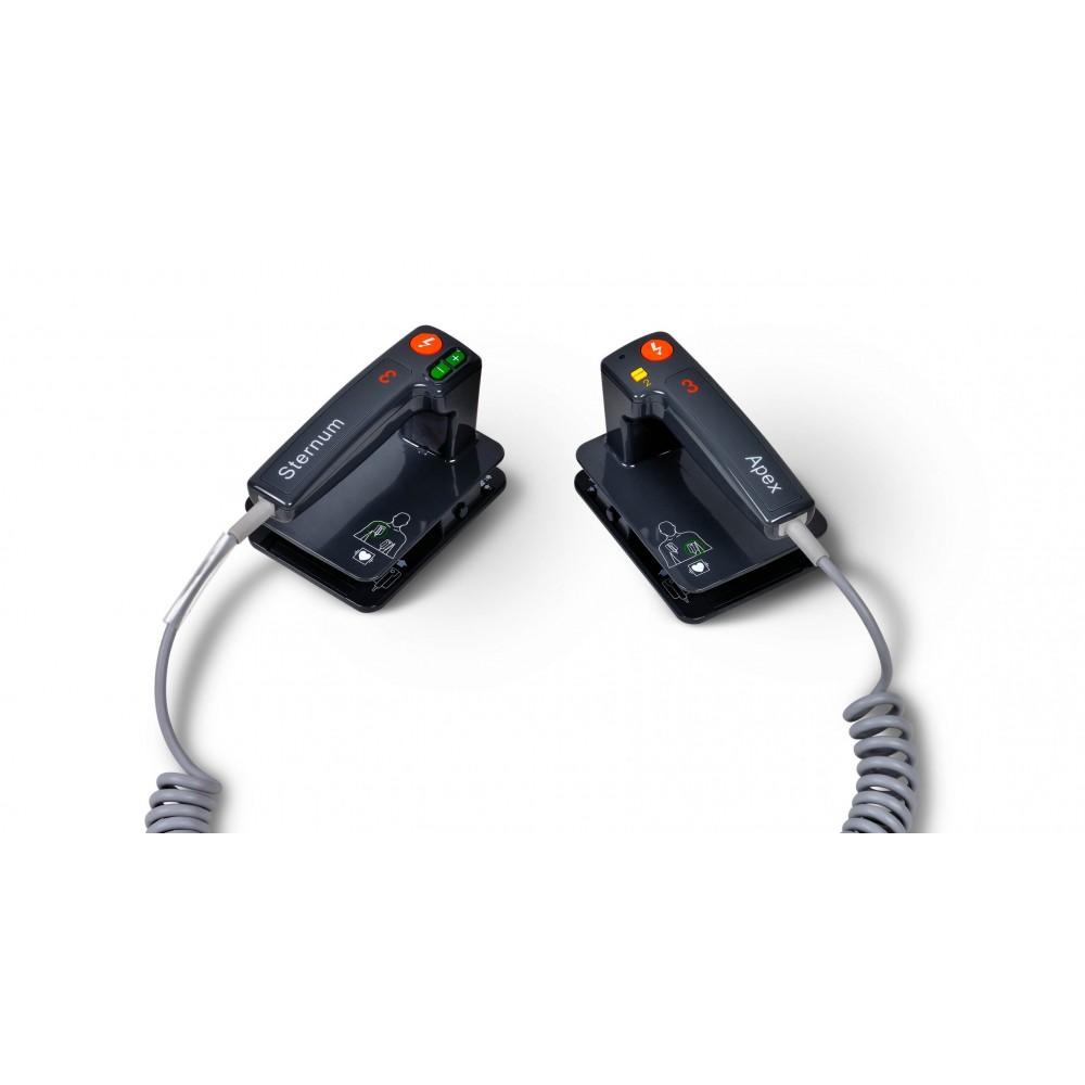 - Marcapasos externo no invasivo, en modo fijo o a demanda, para tratar arritmias lentas o paro cardíaco